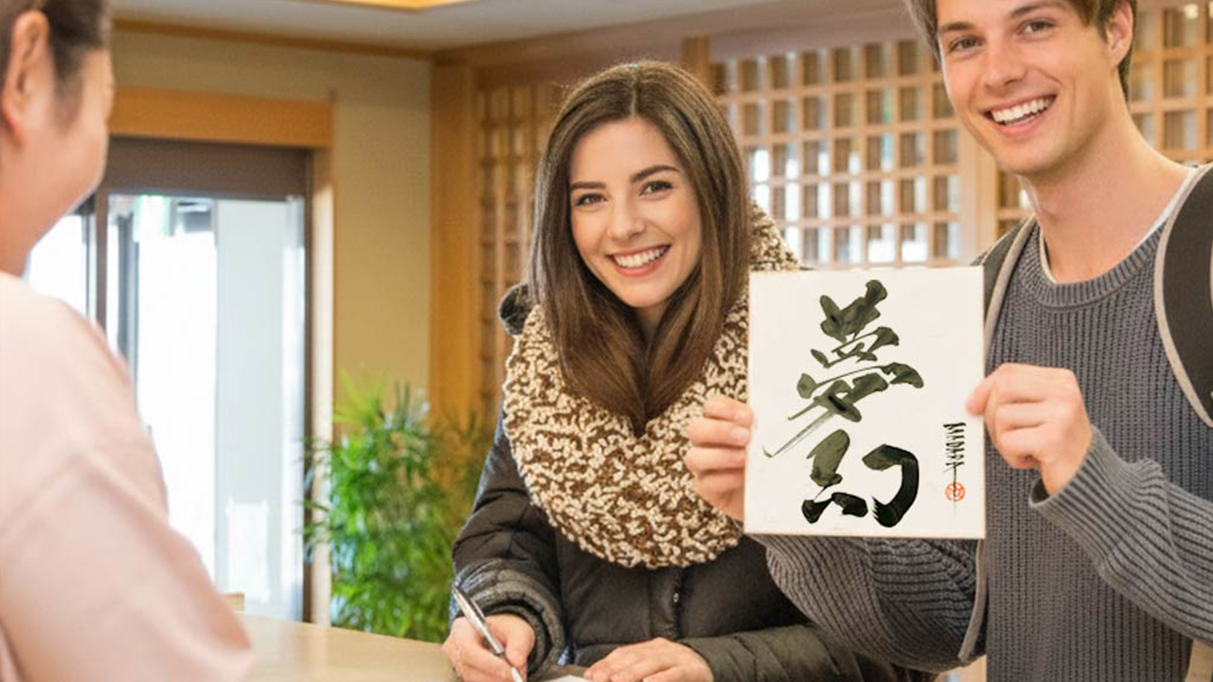 日本へ来た思い出に、世界に一つだけの書道作品を制作いたします。