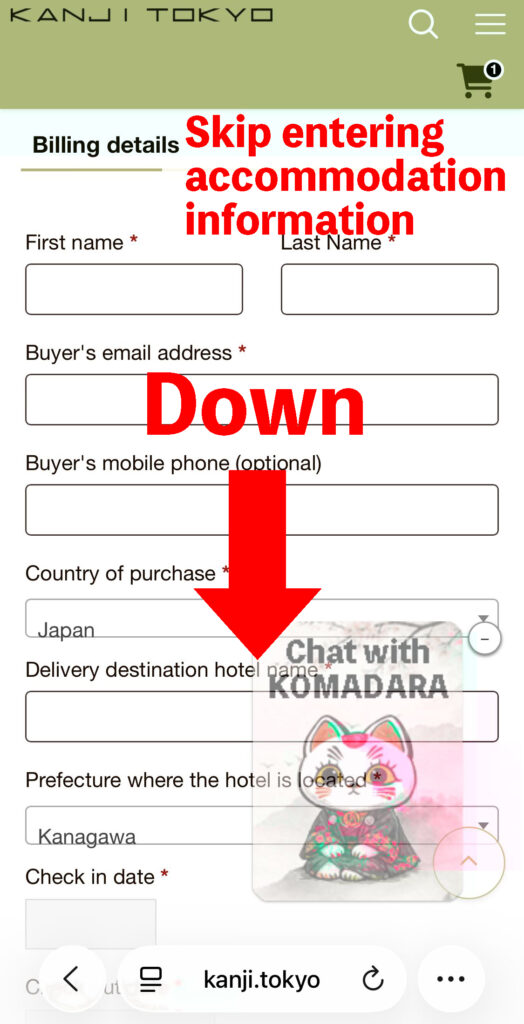 ここではホテルではなく、指定の住所にお届けする為の住所の入力方法を記載します。日本へお住いのお友達への贈り物や、ホームステイ先へのお届け等の場合にご利用ください。