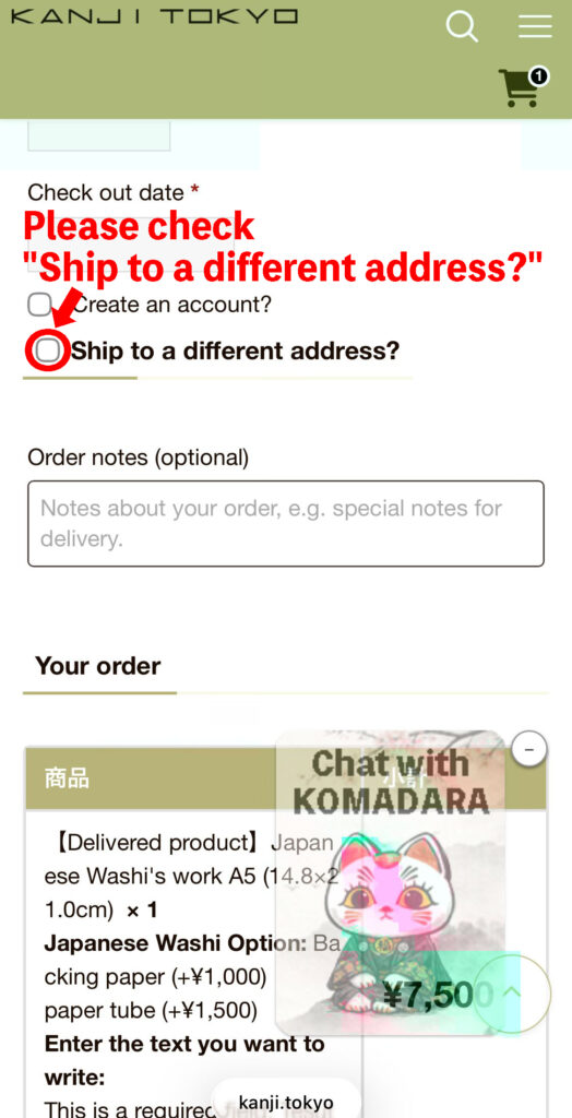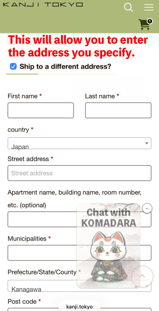 3 Ship to a different address?にチェックを入れてください。