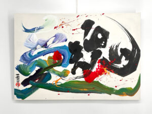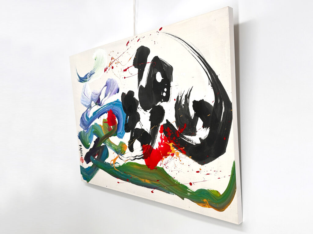 KANJI TOKYO -漢字東京- What kind of person is the Japanese calligraphy ( ” Shodo ” in Japanese ) artists. “ MADARA ”? | KA… Pen name: Madara (MADARA) Real Name: I refrain from disclosing my real name in order to focus on my work and concepts. D Behind the Scenes Aikon was, for me, a moment of awakening. As a calligrapher, ink and brush had always been as natural as breathing. They were not tools but extensions of my life itself— the ink, a liquid form of the soul; the brush, a conduit through which the spirit flows. For years, I had never questioned this. But one day, I realized something quietly unsettling: the belief that “calligraphy must be done only with ink” was itself a boundary that confined my freedom. And then I remembered—before being a calligrapher, I was also a painter.