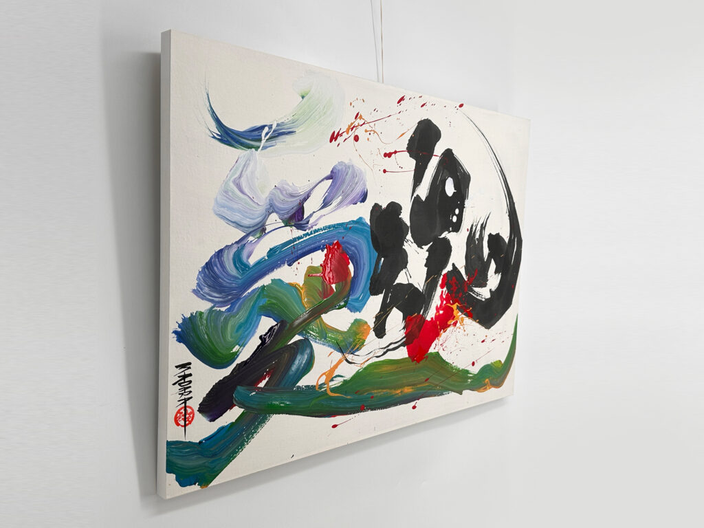When I first touched acrylic paint, I took a deep breath filled with both hesitation and curiosity. It felt different from the cool gravity of ink— softer, denser, and filled with light and air. Its scent, its drying time, its flow—everything felt alive. It was not a line of technique, but a line of breath. It was not calligraphy in the traditional sense, yet I could feel my heart clearly reflected in it.