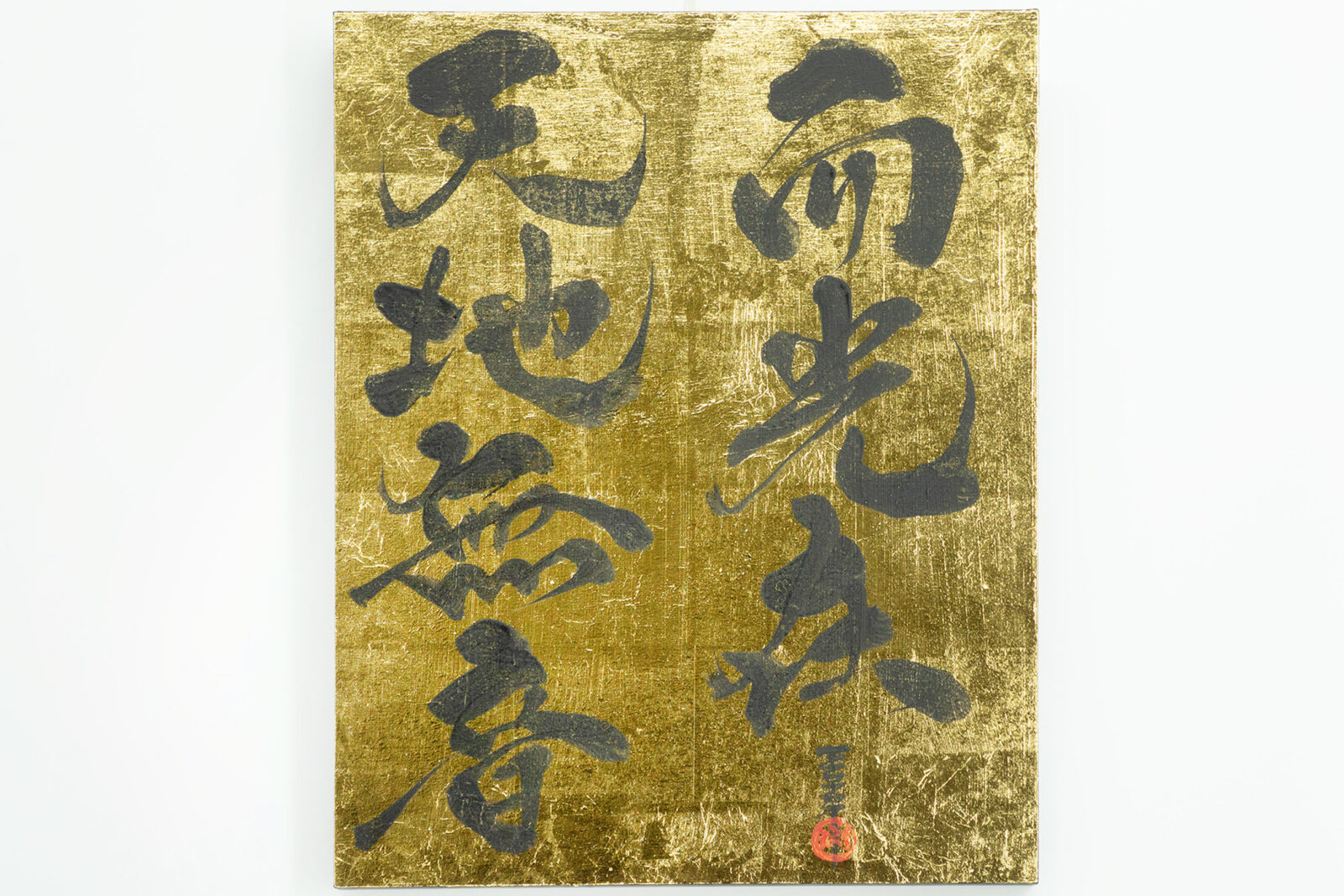 The worldview of the work 天地無音而光在 (Ten-chi-muon-ni-shite-hikari-ari) – Heaven and Earth Are Silent, Yet Light Remains – Heaven and earth do not speak. No sound is born, yet within that silence, light quietly breathes. This work, Heaven and Earth Are Silent, Yet Light Remains, expresses the truth of light that dwells in the threshold between silence and existence— a presence that lingers between being and nothingness, like the faint pulse of life itself. The gold-leaf canvas functions not as ornamentation, but as a mirror that reflects the stillness of the universe. Light is always there, though unseen. It appears only within the heart of one who listens inwardly—like prayer, like breath.