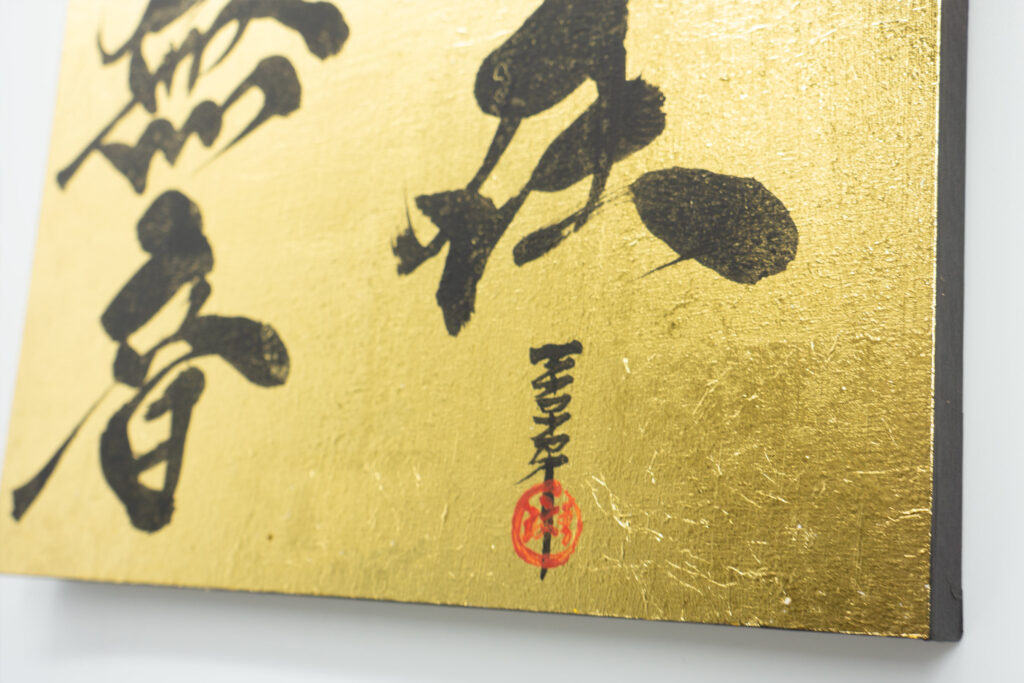 The characters written in Sumi ink arise from the artist’s spirit and wish within the philosophy of Hisseki-jutsu— the art of channeling energy and fortune through the act of writing. It is not a craft of beauty alone, but a ritual of prayer for the future. What flows through the brush is not technique, but the rhythm of the heart and the prayer of life itself. This piece, too, was written in a single breath within silence. In the instant the brush touched the surface, the boundary between the self and the world dissolved, and the silence of heaven and earth guided the movement of the hand. At that moment, ink ceased to be merely black—it became the shadow that reflects light.