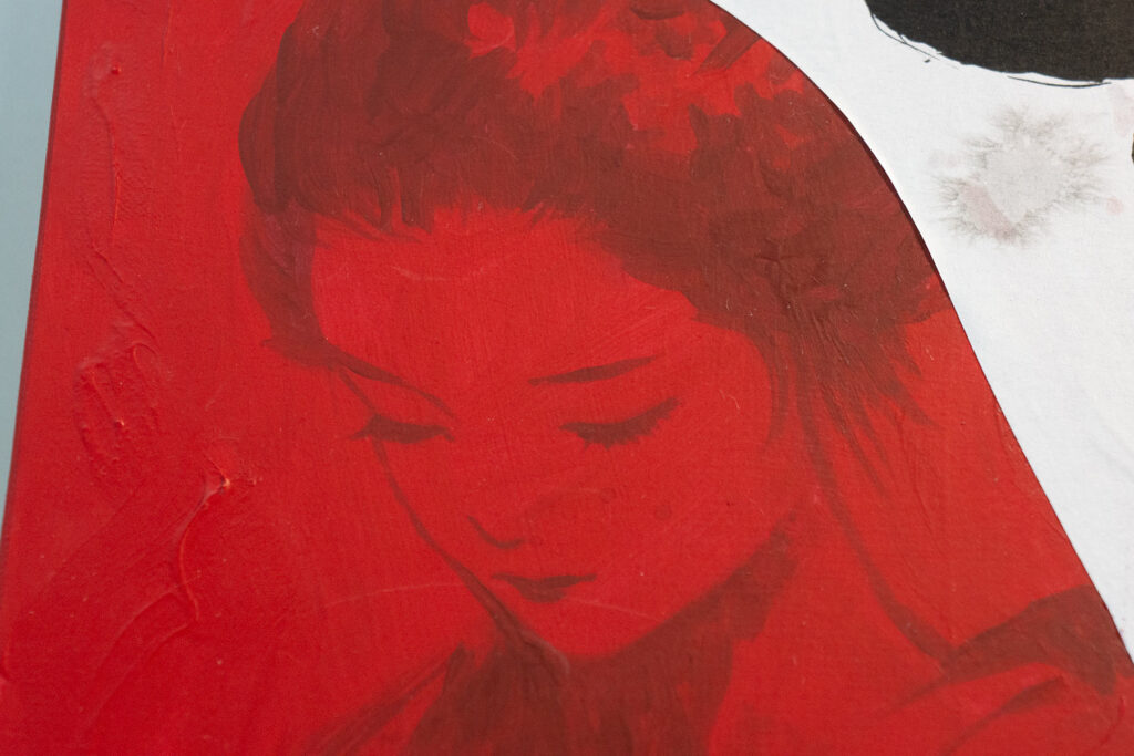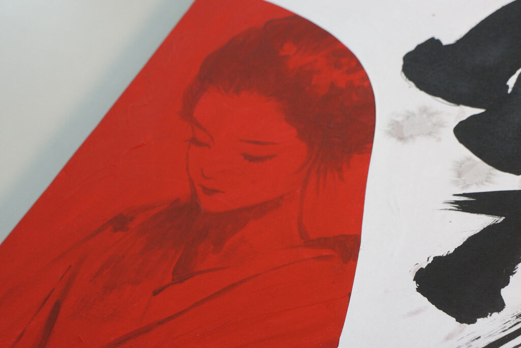 この作品では、大胆で伸びやかな墨のストロークを通して、生々しい感情を注ぎ込み、表現主義とコミックアートの物語性を融合させました。和紙の質感と流れるような墨のコントラストが、緊張感と深みを生み出しています。情熱と繊細な力強さが織りなす深遠な物語を捉え、空間にエネルギッシュでありながらも思索的な存在感をもたらし、見るたびにインスピレーションを掻き立てるような作品を目指しました。