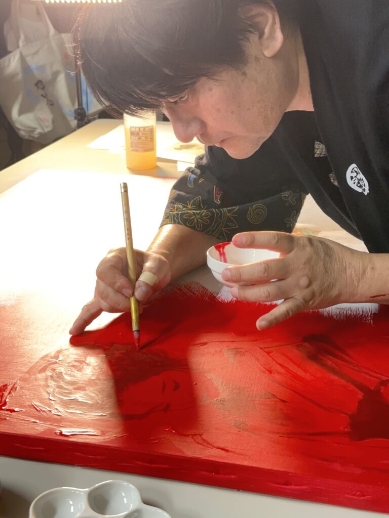 私は、2011年の東日本大震災で、多くの親戚や従妹、そして家を失い。更には原子力発電所の爆発により故郷に戻る事が出来なくなり、絵や書に前向きな想いや願いを込めることができなくなっていました。