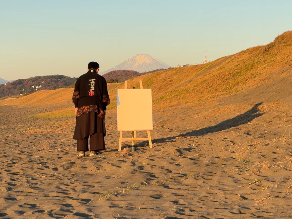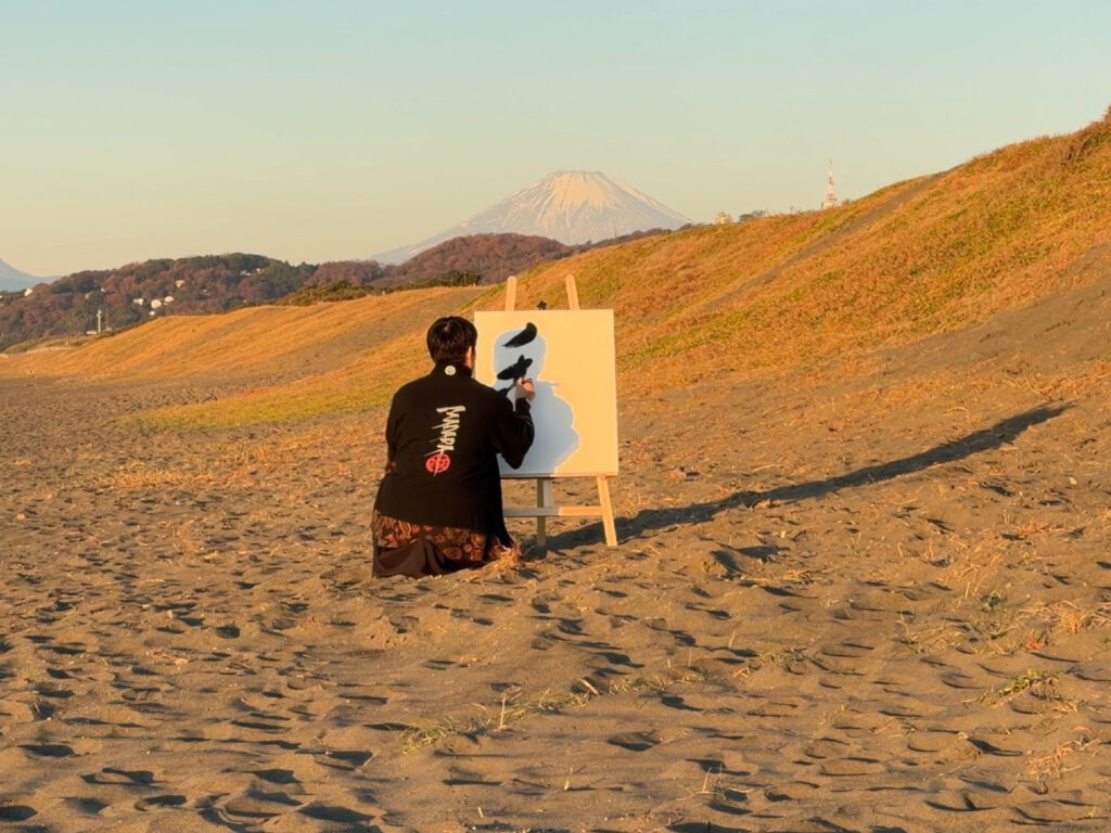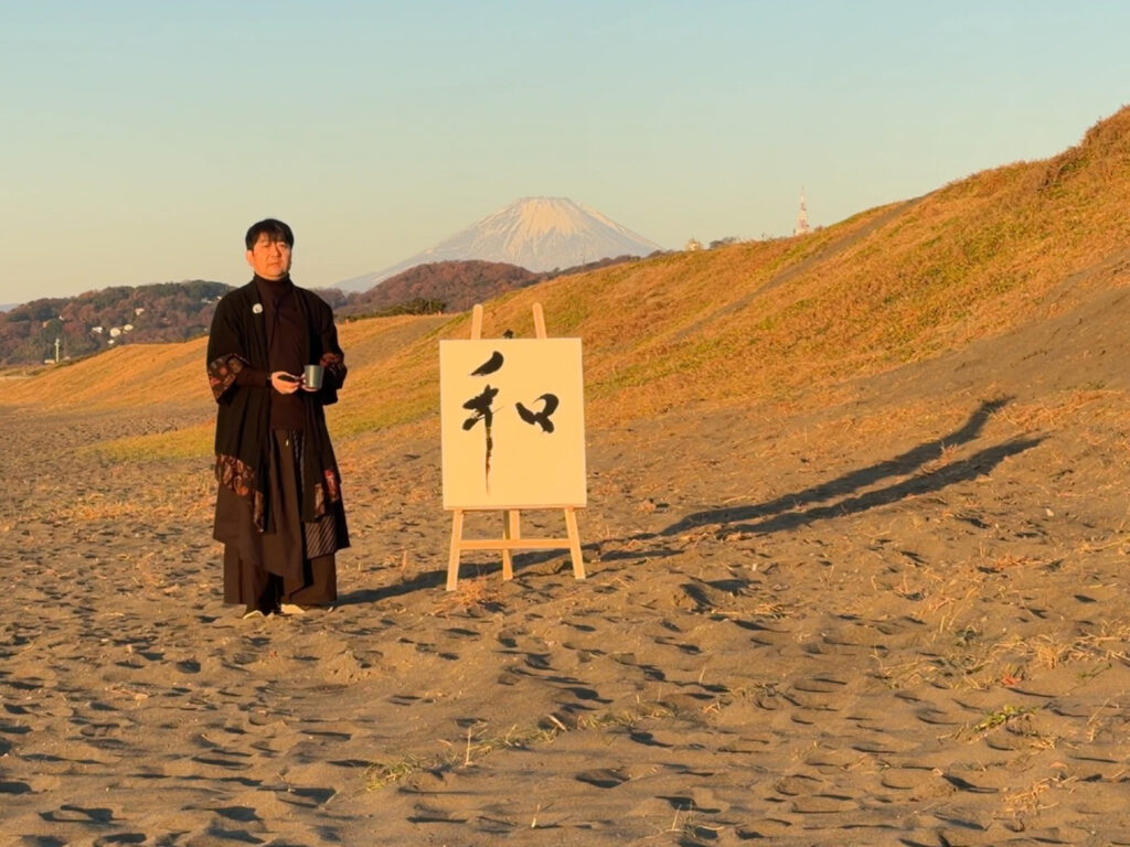 この作品「和」は、2025年の締めくくりとして、神奈川県・平塚の海で制作しました。