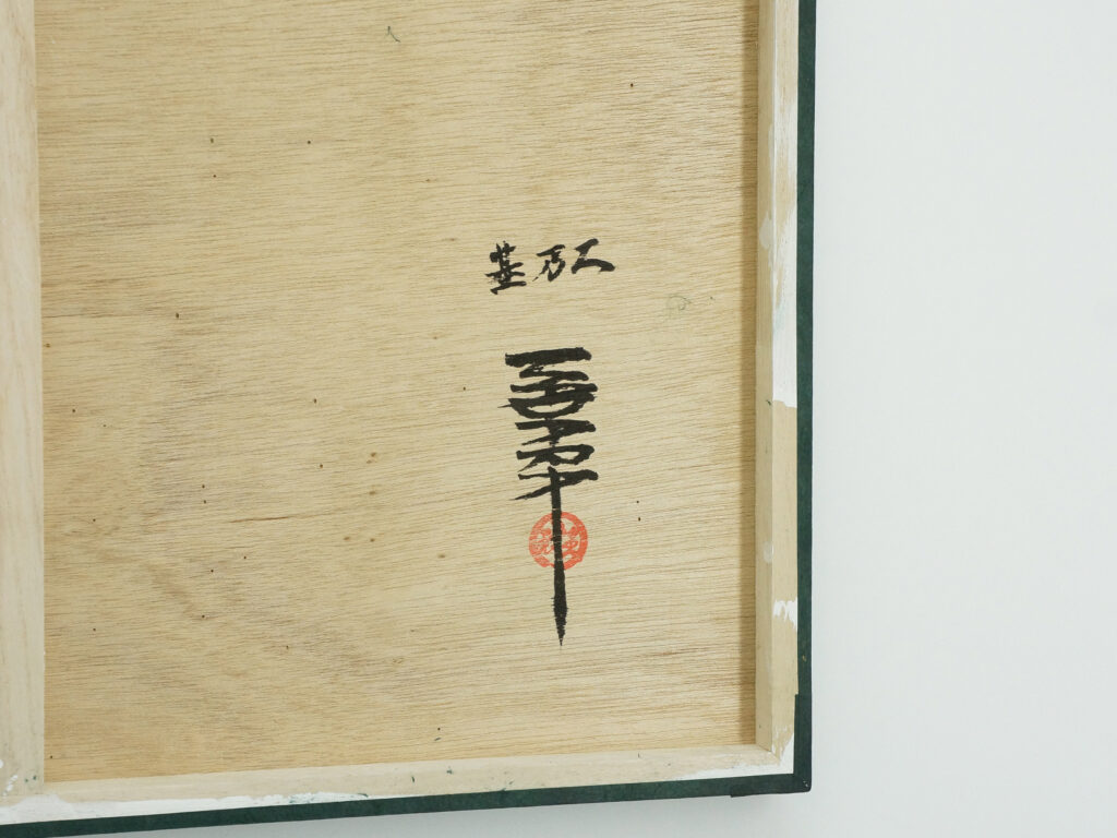 | 作品の仕上げ | 木製キャンパスの上に、ジェッソで下地処理をし、書道紙(和紙)を貼り、墨汁で描き、仕上げています。 |