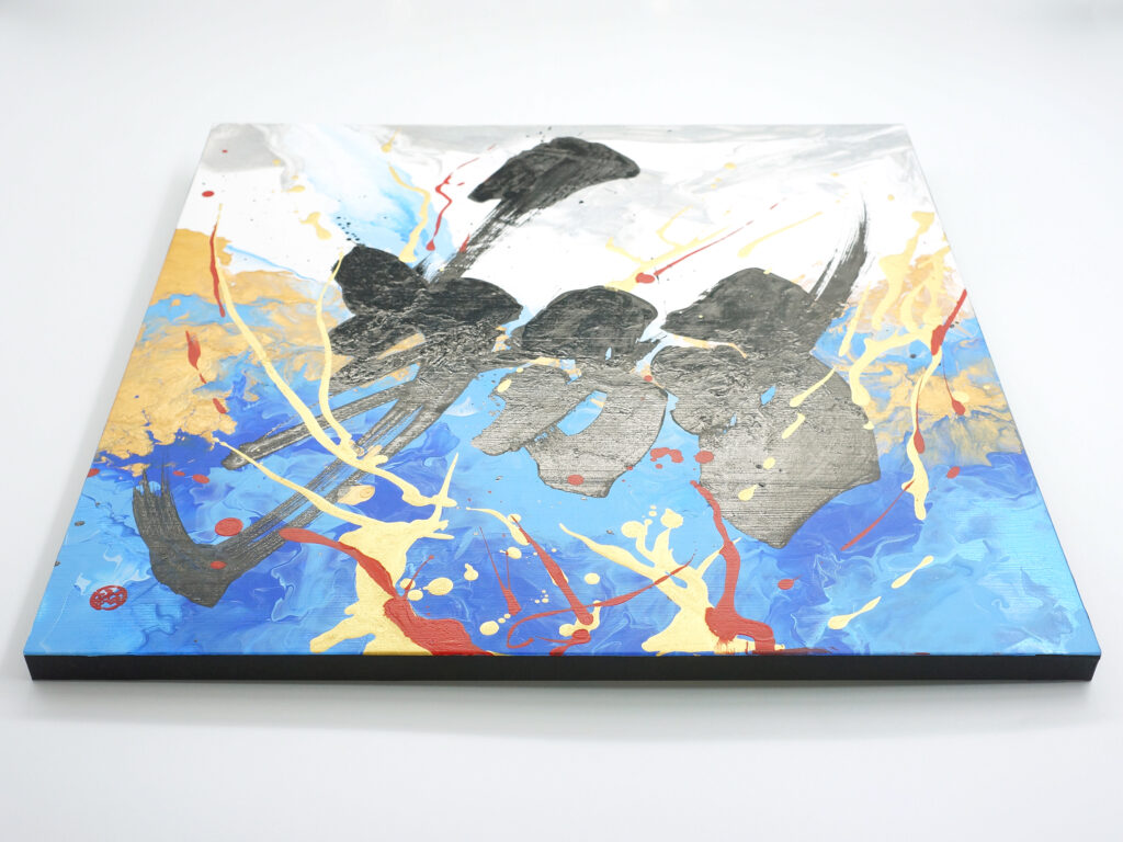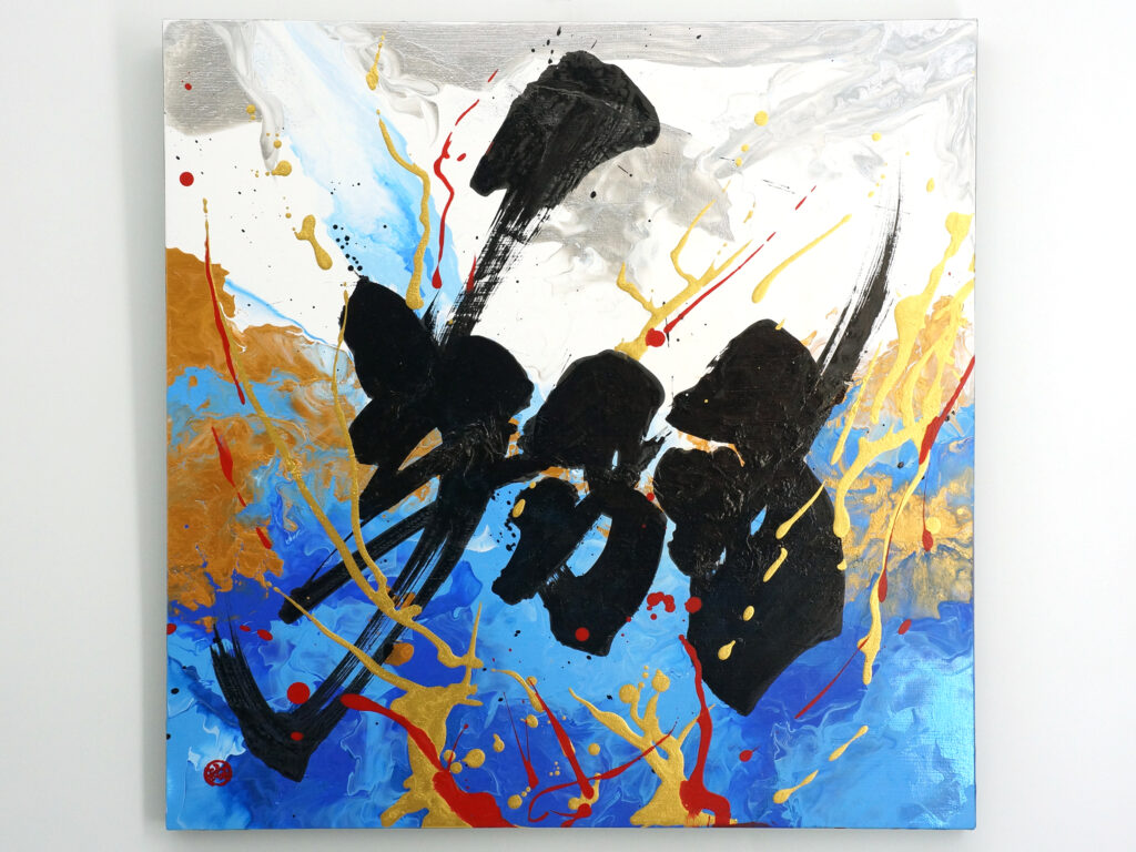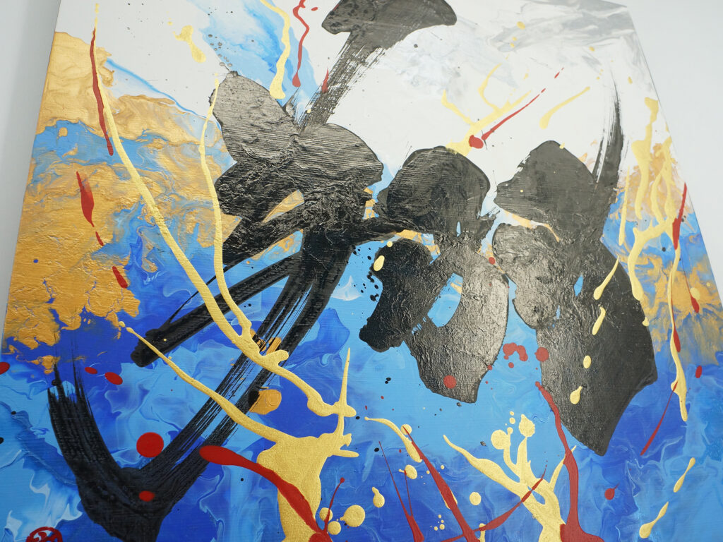 本作は、その“決めた瞬間”を可視化した書道アート作品である。