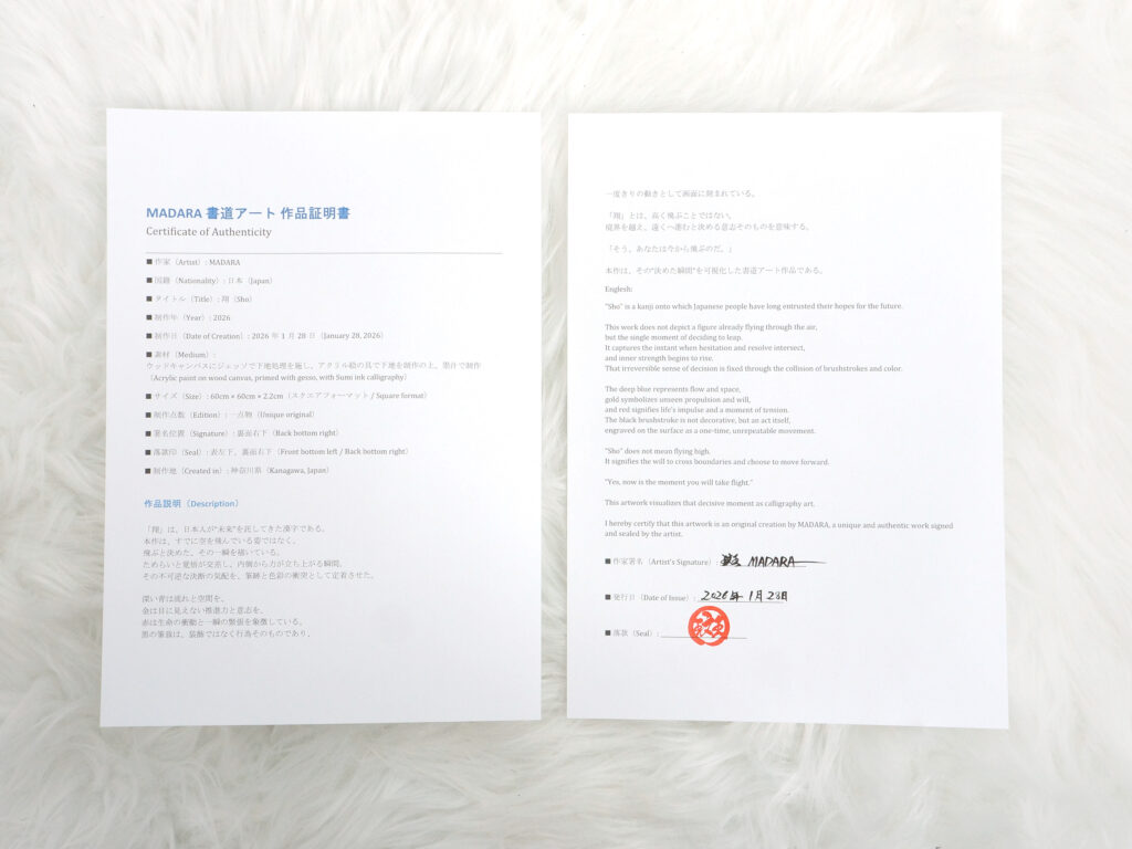 また、作品証明書も付属いたします。
